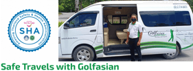 ゴルフ場までの送迎はお任せください。空港からゴルフ場、ホテルーゴルフ場間、最終日はゴルフ場から空港までと旅程に合わせてお迎えにあがります。(高速代、ガソリン代など追加代金は一切いただきません)ゴルフ場までの道を熟知した専門のドライバーがご案内させていただきます。