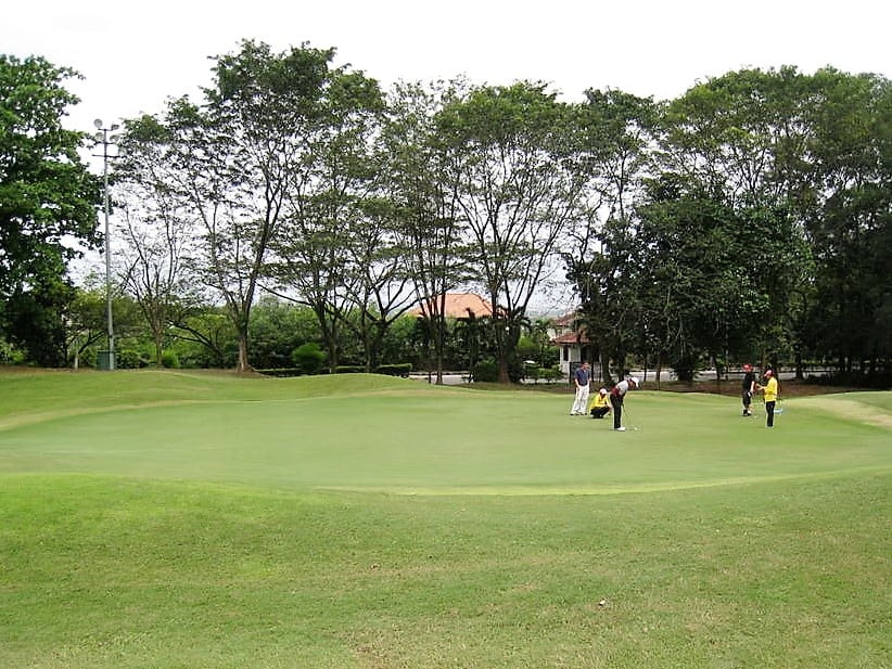 シャー・アラム地区ロイヤルタウンの北、ブルーモスクにほど近いところに位置する、通称KGSAASはマレーシアを訪れるゴルフ観光だけではなく、プロゴルファーにとっても価値あるコースだ。KLのゴルフコースとしてはKL中心部からわずか25分いうアクセスの良さが嬉しい。27ホールのKGSAASが権威あるコースとされるのは、そのロケーション及び全英オープン5回優勝、”キング” ピーター・トムソンの設計によるからだ。プレジデント、サルタン、アラム・シャーの3コースで構成された27ホールは起伏に富み、3コースはそれぞれクラブハウスから離れている。地形を活かした自然なアンジュレーション、美しい池、25000以上の木々や灌木が織りなす景色はまるで絵画のように美しい。トムソン設計の特徴であるポットバンカー、うねりのあるフェアウェイ、大きめの砲台グリーンなど非常にチャレンジングだ。通常トップレベルの競技に利用されるのはサルタンとアラム・シャー、競技者はパー5、伝説のドラコンホール(サルタン2番ホール)で試されること間違いなしだ。このホールの特徴は小高い丘から狭いフェアウェイに向かって打つティーショット、2打目はフェアウェイを横切る幅の広いクリーク越え、そして傾斜のきついグリーンの周りはバンカーが配置されている。ドラゴンコースほどではないにしても、こうした試練のホールが全体的に多い。3コースとも池や変化のある起伏が効果的配置された素晴らしいパー3ホールがある。メンテナンスは完璧でここのグリーンはマレーシアの中でもかなり精密で速い。ナイトゴルフの発祥の地と言われているように、KGSAASはマレーシアで最初にナイトプレーが行われたコースで知られる。また、地中海スタイルのクラブハウスはプロショップ、屋外グリル併設のカフェ、サウナとジャグジー付きのヘルスセンターと充実した施設を備えている。